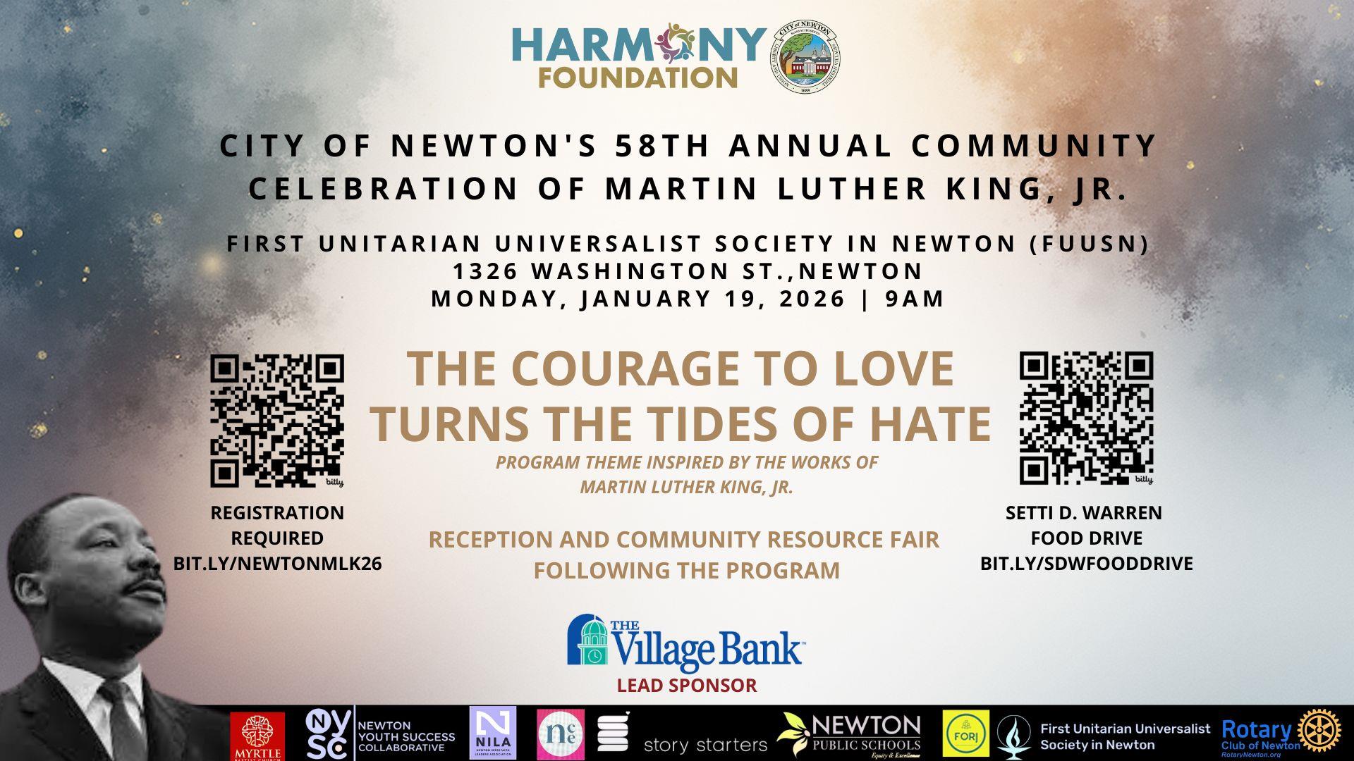 The Newton Rotary Club is proud to announce a significant commitment to addressing food insecurity in our community. In collaboration with the City of Newton, the Harmony Foundation, and Village Bank, Newton Rotary is donating $1,000 to each participating local food pantry as part of a community-wide food drive honoring the enduring legacies of Setti Warren and Dr. Martin Luther King Jr.